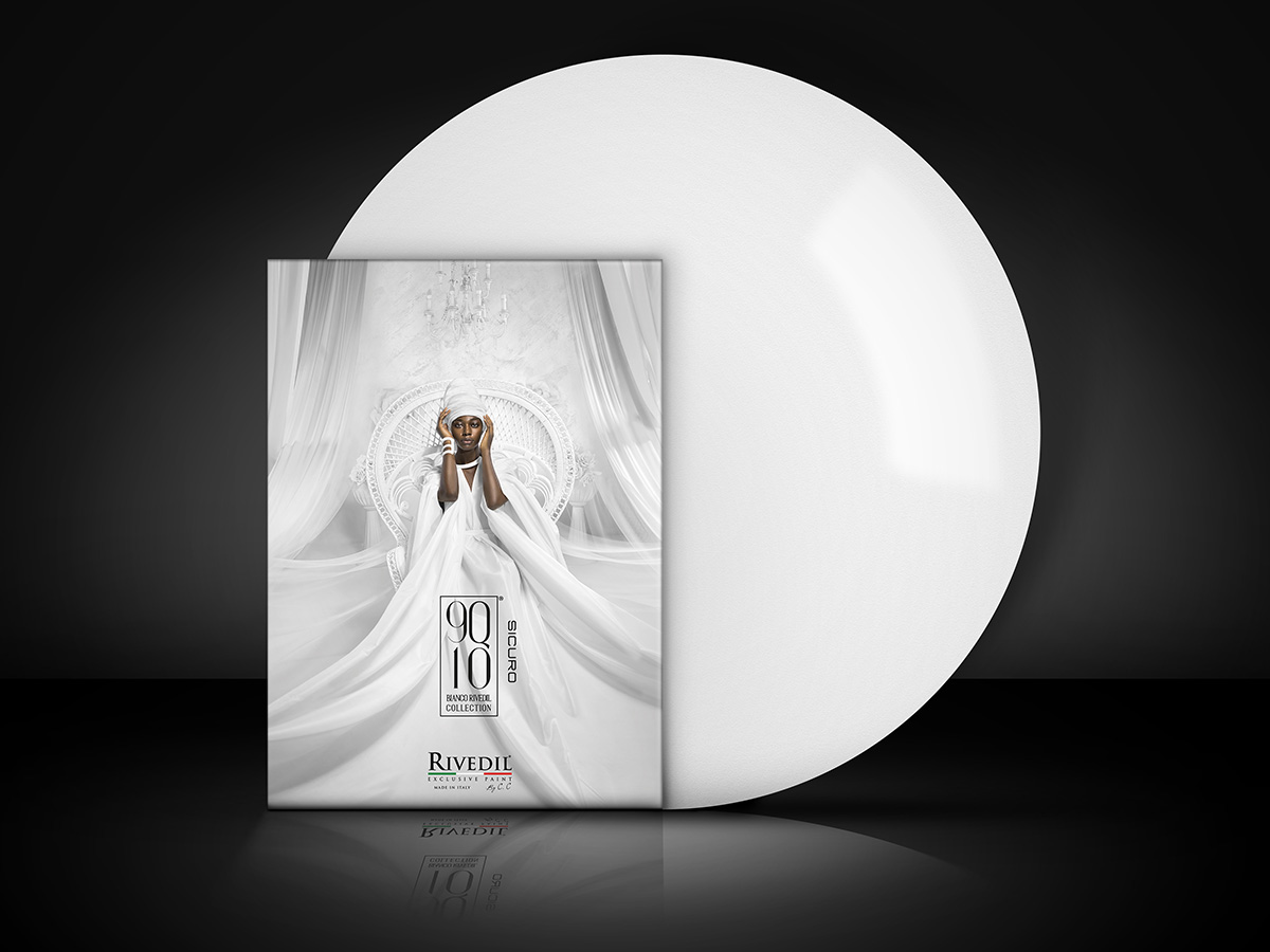 Fondo all’acqua bianco, leggermente sabbiato, per finiture e rivestimenti decorativi.