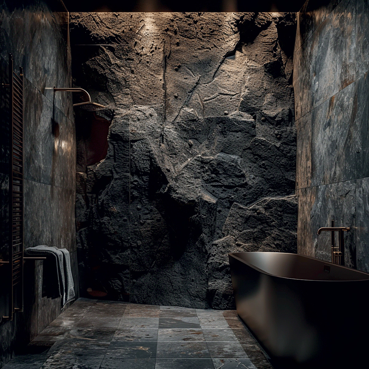 Rivestimento decorativo, traspirante, termoisolante e fonoassorbente per interni ed esterni, per ottenere effetti strutturati come EFFETTO ROCCIA, EFFETTO LUNA, EFFETTO LAVA e simili.