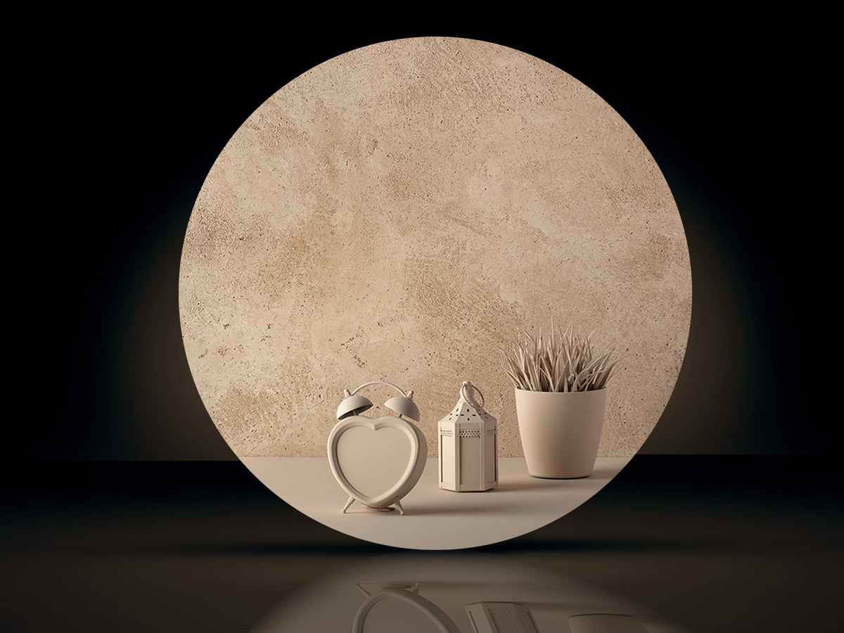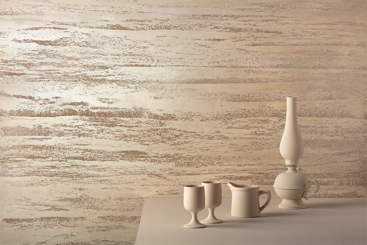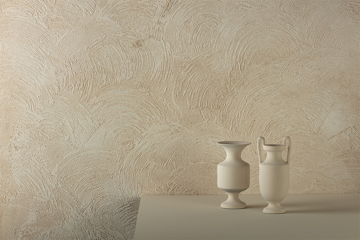 Rivestimento decorativo a base calce in polvere per l’effetto marmo italiano travertino.