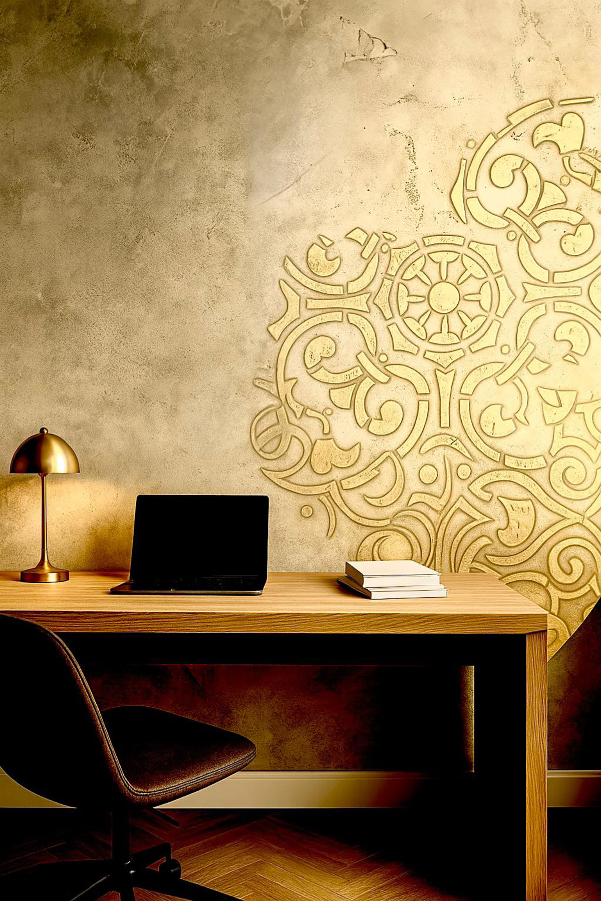 Rivestimento decorativo ad effetto metallico a base di resine e polveri metalliche. L’applicazione finale del protettivo ANTIOXIDANT PROTECTIVE rende il supporto altamente protettivo e lavabile.