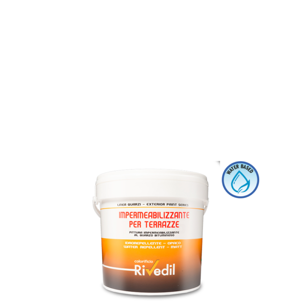 Quarzabdichtungsfarbe, bituminöses Produkt, für Dachterrassen.