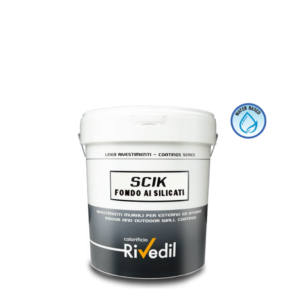 Linea Pitture ai Silicati: Rivedil ha realizzato una linea di pitture in alternativa alle classiche pitture a base calce. Ideali per edifici storici, ma anche su nuove costruzioni o facciate isolate con cappotto termico. (Il legante silicato reagisce chimicamente con il supporto legandosi intimamente senza creare film). Elevata traspirabilità e impermeabilità rendono Scik Silik, la migliore scelta per edifici in zone umide in prossimità di fiumi o laghi, conferirà alle facciate un aspetto inalterato nel tempo.