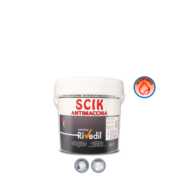 Pittura antimacchia, altamente coprente a base di resine speciali per zone annerite dal fumo. Al solvente.